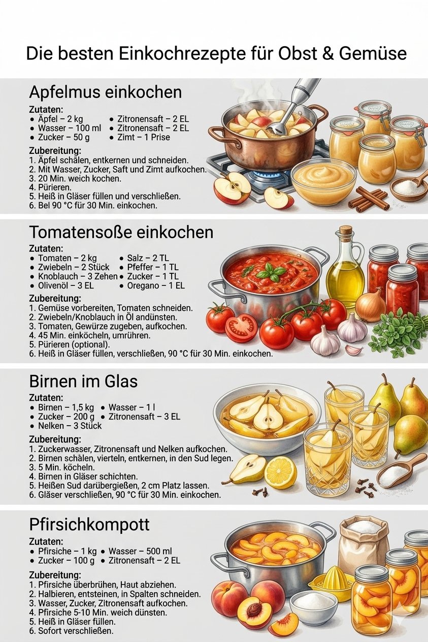 Apfelmus einkochen Zutaten: Äpfel – 2 kg Wasser – 100 ml Zucker – 50 g Zitronensaft – 2 EL Zimt – 1 Prise Zubereitung: Äpfel schälen, entkernen und in kleine Stücke schneiden. Äpfel mit Wasser, Zucker, Zitronensaft und Zimt in einem großen Topf aufkochen. Bei mittlerer Hitze zugedeckt ca. 20 Minuten weich kochen. Die weichen … Read more