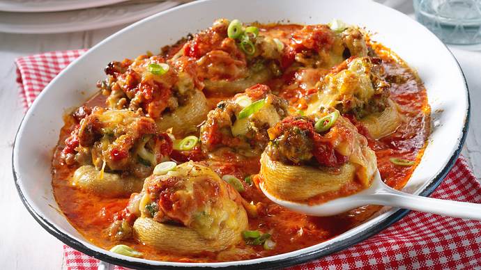 Die großen Exemplare mit Spinat, Feta oder Quinoa füllen, im Ofen backen und mit einem grünen Salat servieren – leicht, sättigend und optisch ein Highlight.