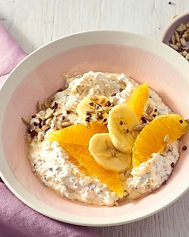 Ersetze einen Teil der Bananen durch Haferflocken und Milch (oder Pflanzendrink). So entsteht ein nahrhaftes Frühstück mit viel Energie für den Tag.