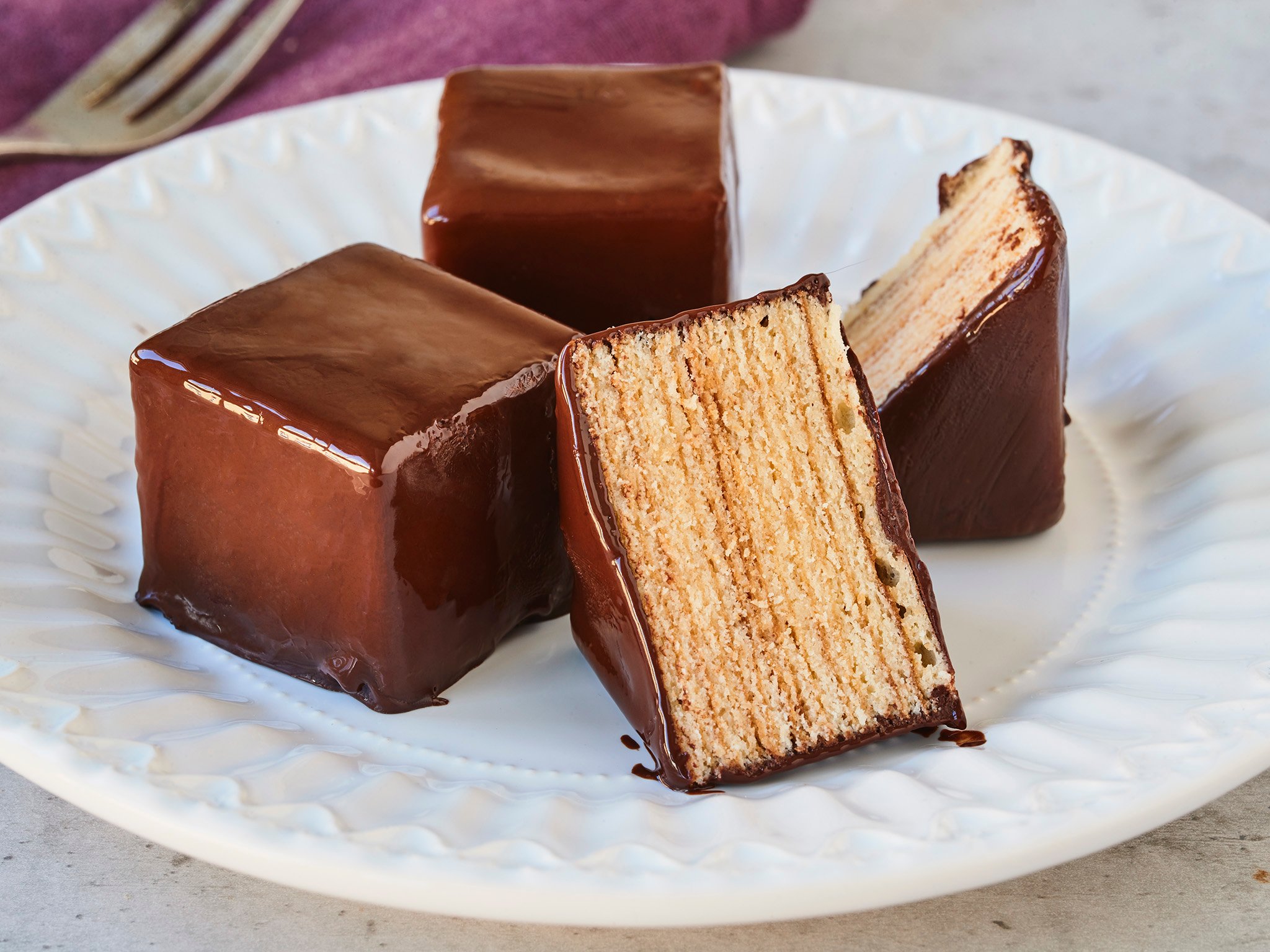 Kühlen vor dem Glasieren: Nur kalter Baumkuchen bekommt eine gleichmäßige, glänzende Schokoladenglasur.