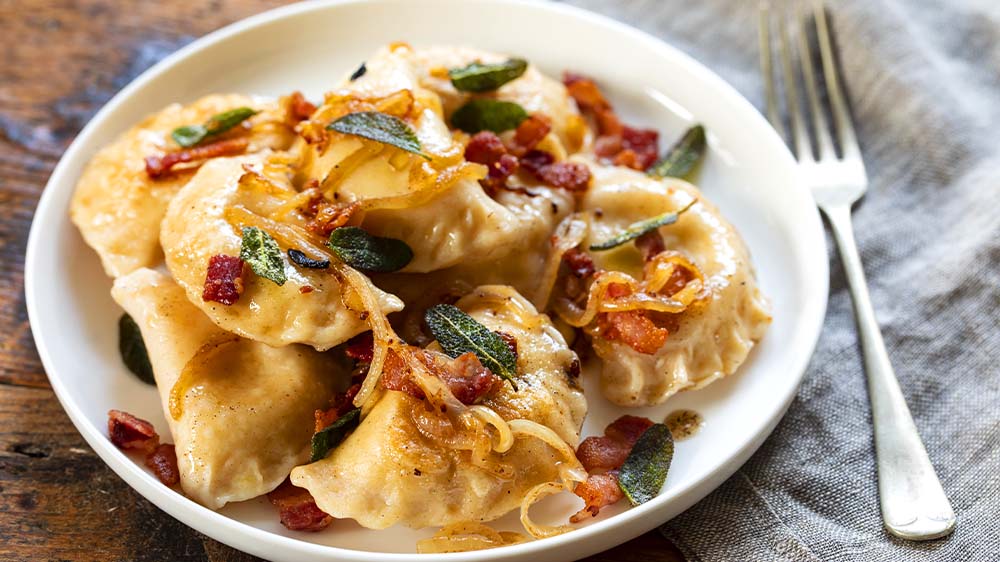 Mit Butter & Zwiebeln: Klassisch polnisch – geschmolzene Butter und goldbraune Zwiebelwürfel darübergeben.