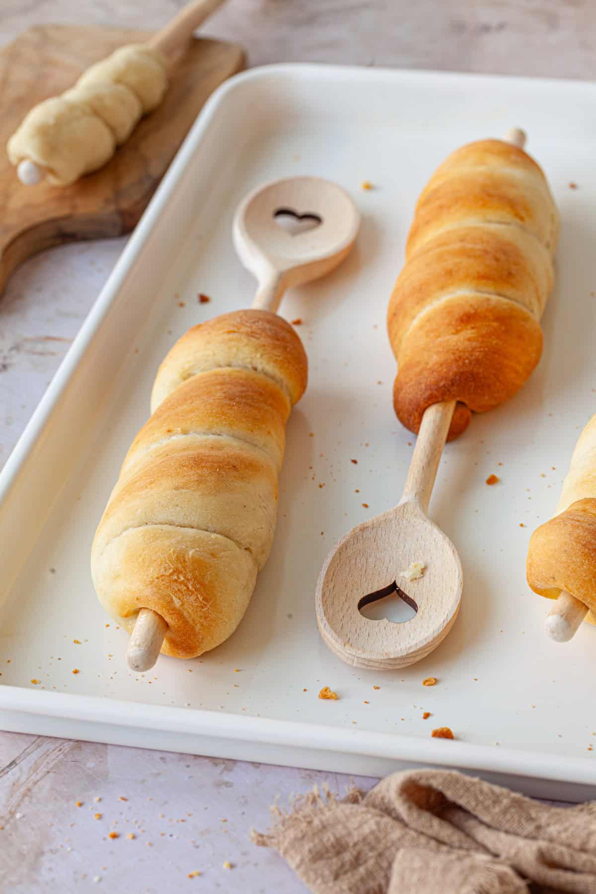 Knoblauchbutter-Füllung: Den Teig leicht ausrollen, mit Knoblauchbutter bestreichen und dann um den Stock wickeln – herrlich aromatisch!