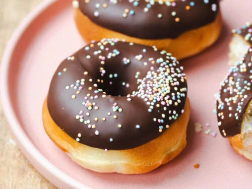 Nicht zu lange backen: Donuts trocknen schnell aus. Lieber etwas früher aus dem Ofen holen und die Restwärme nutzen.