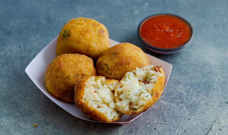 Italien: Arancini stammen aus Sizilien und sind oft mit RagĂč oder Erbsen gefĂŒllt.