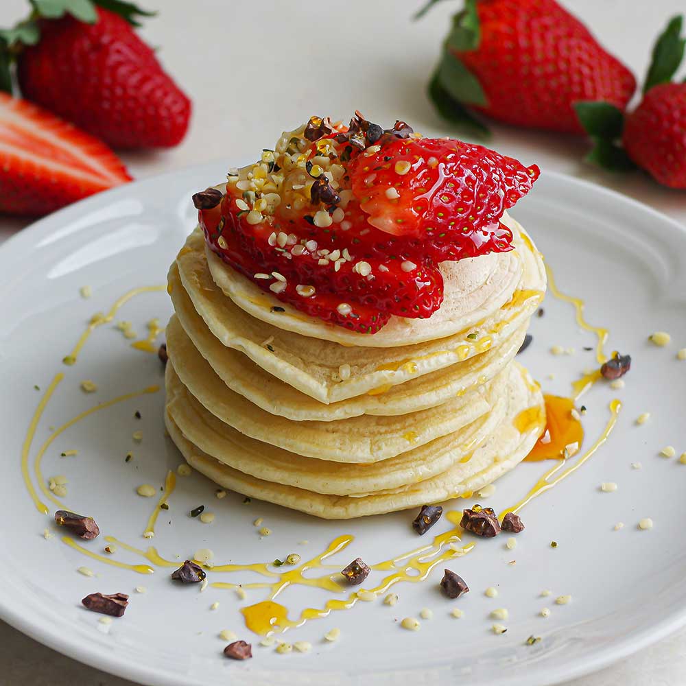 Auch wenn du auf tierische Produkte oder Gluten verzichtest, musst du nicht auf fluffige Pancakes verzichten.