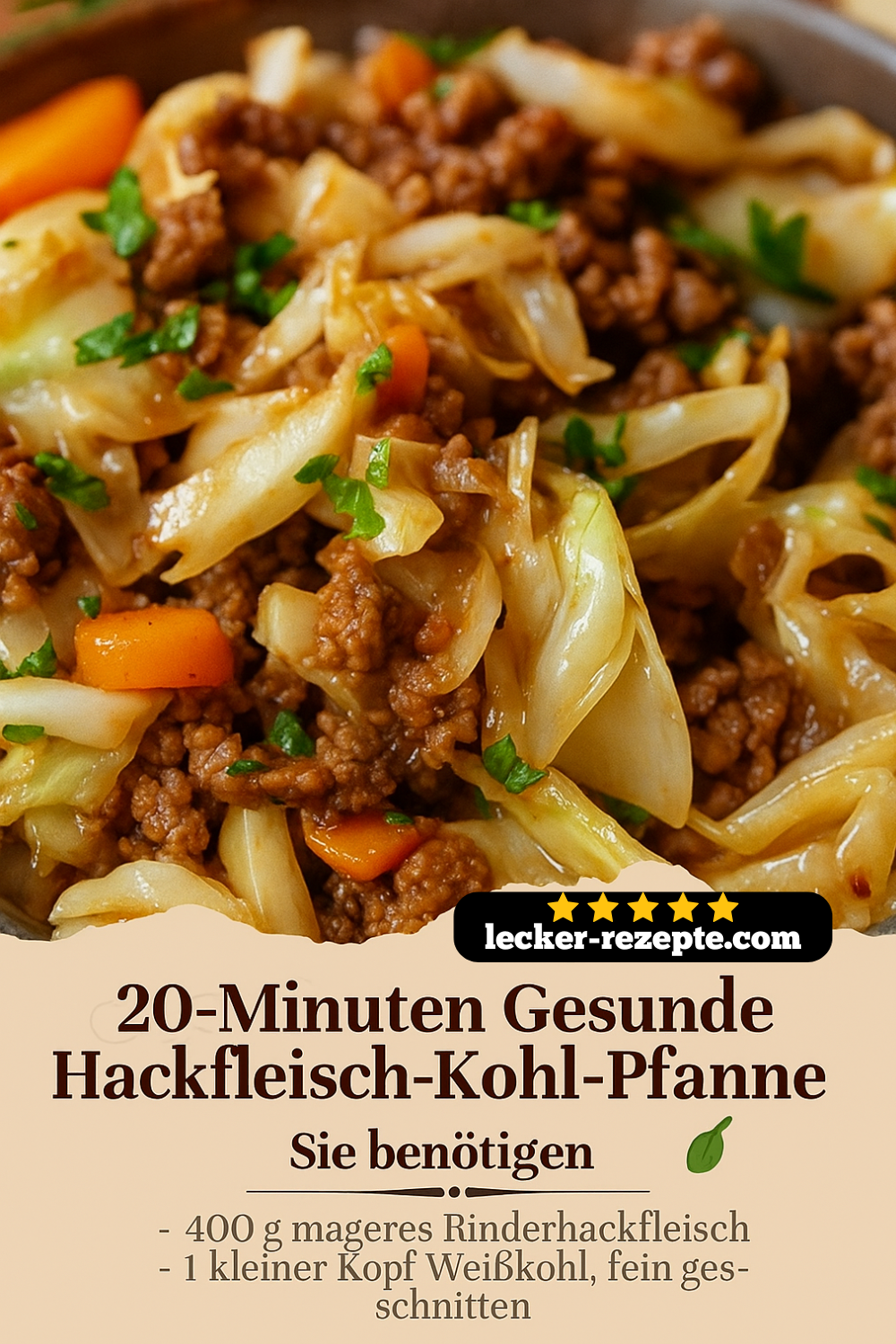 Eine 20-Minuten Gesunde Hackfleisch-Kohl-Pfanne ist das perfekte Rezept für alle, die im Alltag wenig Zeit, aber hohe Ansprüche an Geschmack und Nährwert haben. Dieses Gericht vereint saftiges Hackfleisch, knackigen Kohl und aromatische Gewürze zu einer leichten, aber sättigenden Mahlzeit. Ob als schnelles Abendessen, Meal-Prep-Idee oder gesunde Familienküche – diese Pfanne überzeugt durch Einfachheit, Frische und Geschmack.