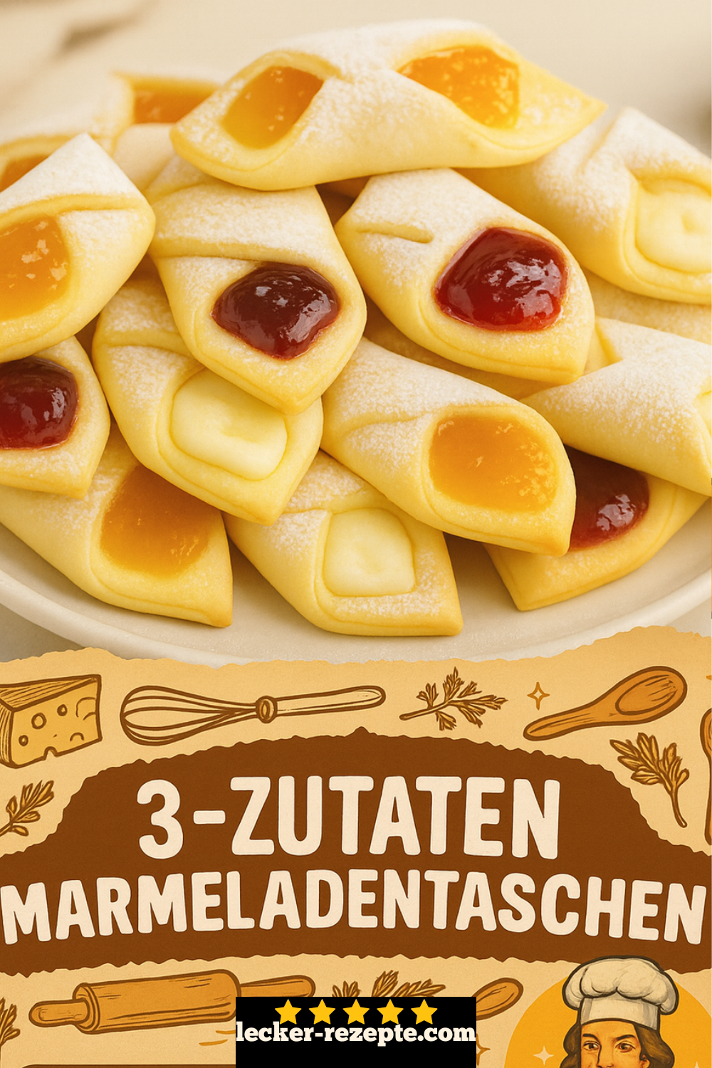 Wenn es ein Rezept gibt, das wirklich immer gelingt und garantiert für Begeisterung sorgt, dann sind es 3-Zutaten-Marmeladentaschen. Sie sind blitzschnell gemacht, unglaublich fruchtig-knusprig und damit perfekt für alle, die in kurzer Zeit etwas Süßes zaubern möchten. Ob für spontanen Besuch, als Snack zwischendurch, zum Frühstück, für die Schule oder als kleines Mitbringsel – diese süßen Teilchen passen einfach immer.
