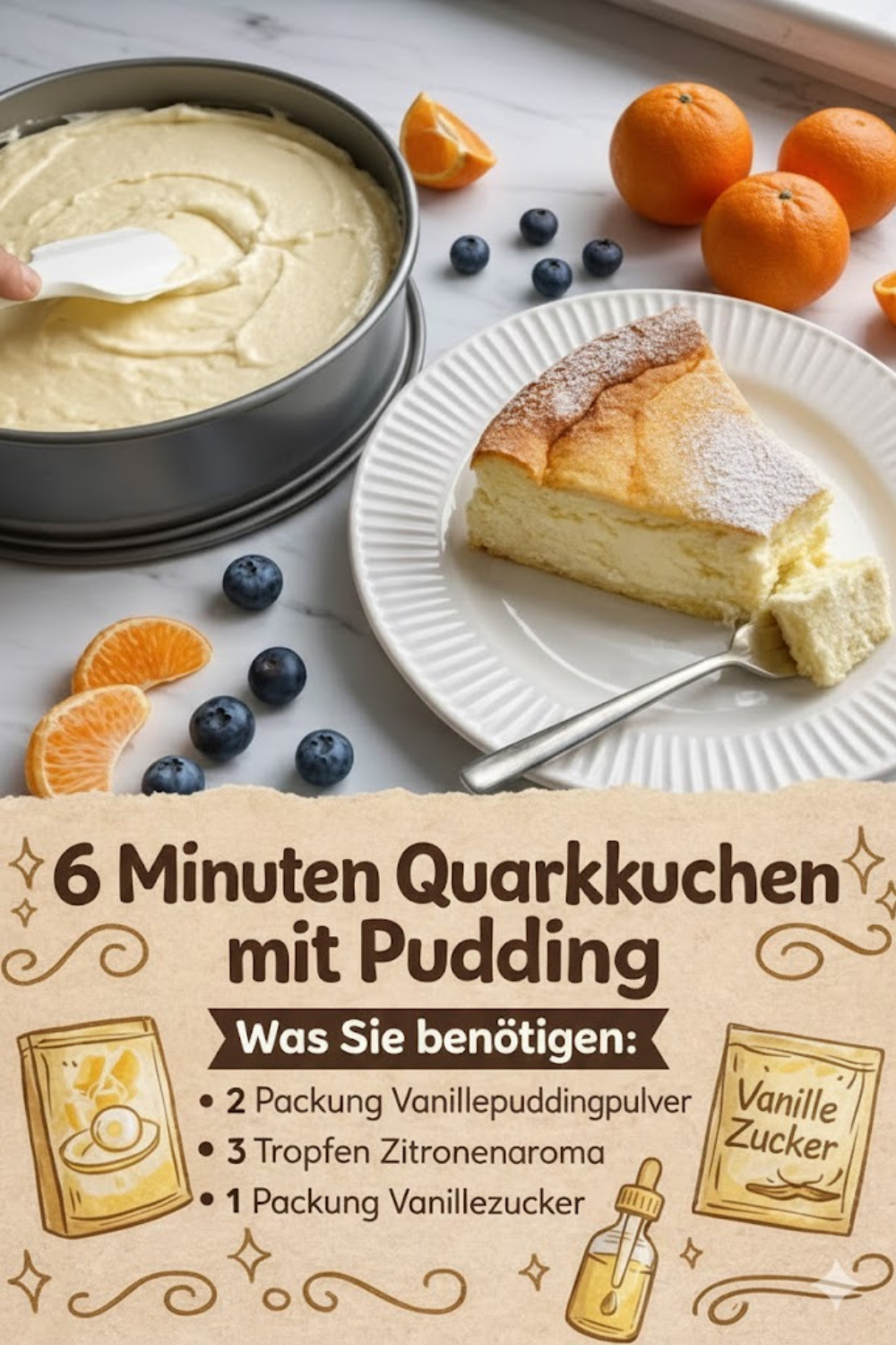 Warum 6 Minuten Quarkkuchen mit Pudding so genial ist