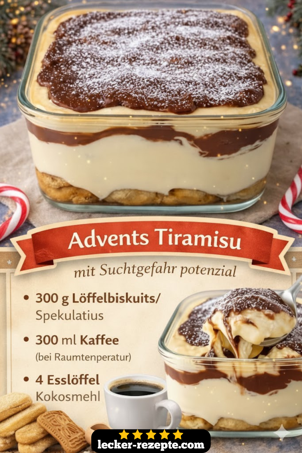 Wenn die Tage kürzer werden, Kerzenlicht die Abende wärmt und der Duft von Zimt, Kakao und Orangen durch die Küche zieht, beginnt die schönste Zeit des Jahres: der Advent. Genau in diese Stimmung passt ein Dessert, das Klassiker neu interpretiert und Herzen im Sturm erobert. Advents-Tiramisu hat echtes Suchtgefahr-Potenzial, einmal probiert und du bist rettungslos verliebt – diese Aussage kommt nicht von ungefähr. Das festliche Tiramisu verbindet cremige Leichtigkeit mit winterlichen Aromen und ist der Star auf jedem Adventskaffee, Weihnachtsbuffet oder Familienfest in Deutschland, Österreich und der Schweiz.