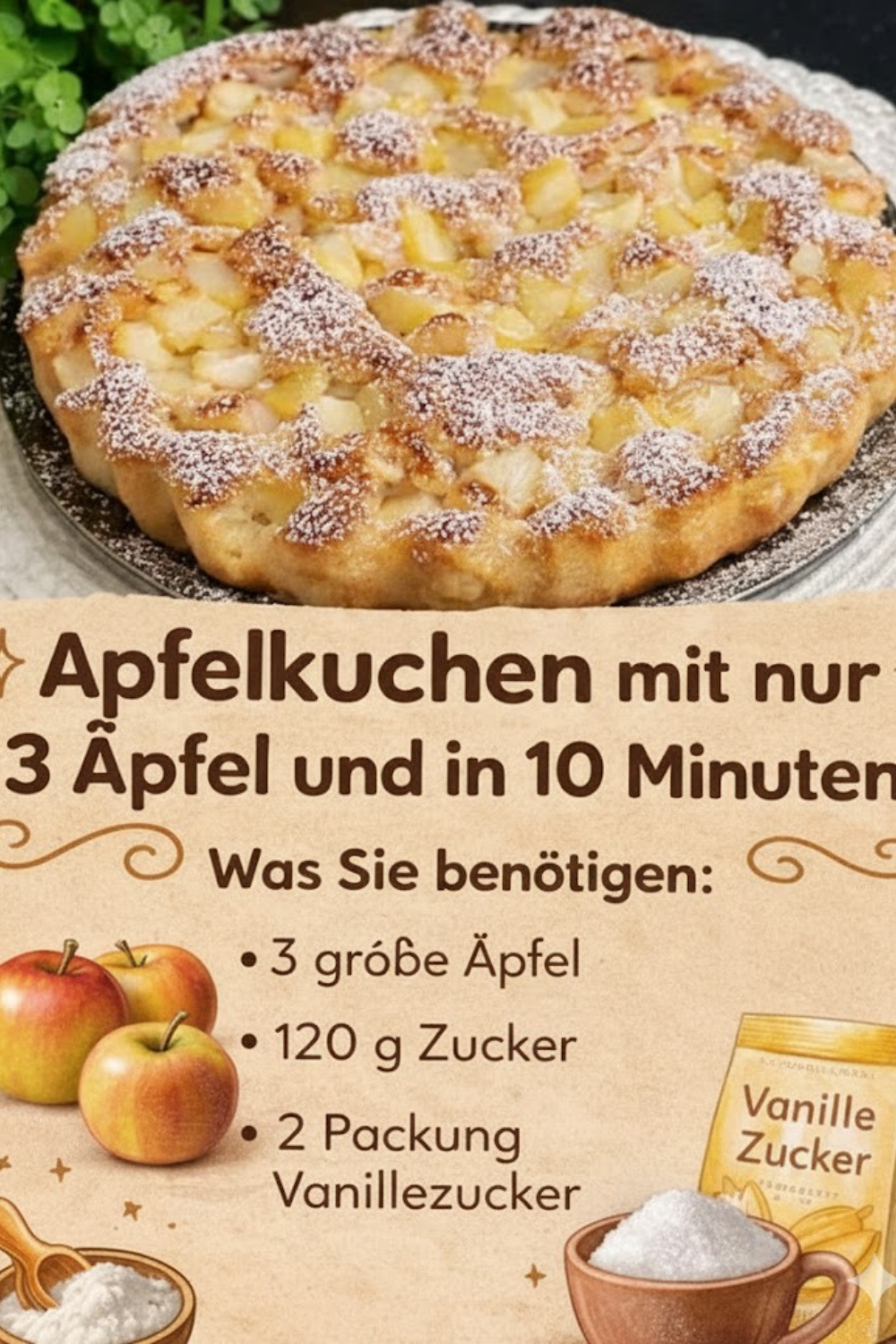 Ein frisch gebackener Apfelkuchen gehört zu den Klassikern der deutschen Küche – saftig, aromatisch und perfekt für jede Gelegenheit. Doch wer hat schon immer Zeit, stundenlang in der Küche zu stehen? Die gute Nachricht: Mit unserem Rezept für Apfelkuchen mit nur 3 Äpfeln in 10 Minuten, superschnell, saftig und einfach genial kannst du im Handumdrehen einen köstlichen Kuchen zaubern. Dieses Rezept ist nicht nur schnell, sondern auch einfach umzusetzen, ideal für spontane Gäste, einen süßen Nachmittag oder einfach, wenn die Lust auf etwas Leckeres groß ist.