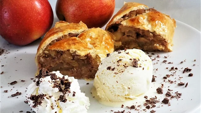 Es gelingt sowohl mit frischem Strudelteig als auch mit Blätterteig.