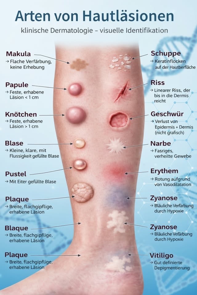 **Arten von Hautläsionen – Klinische Dermatologie**