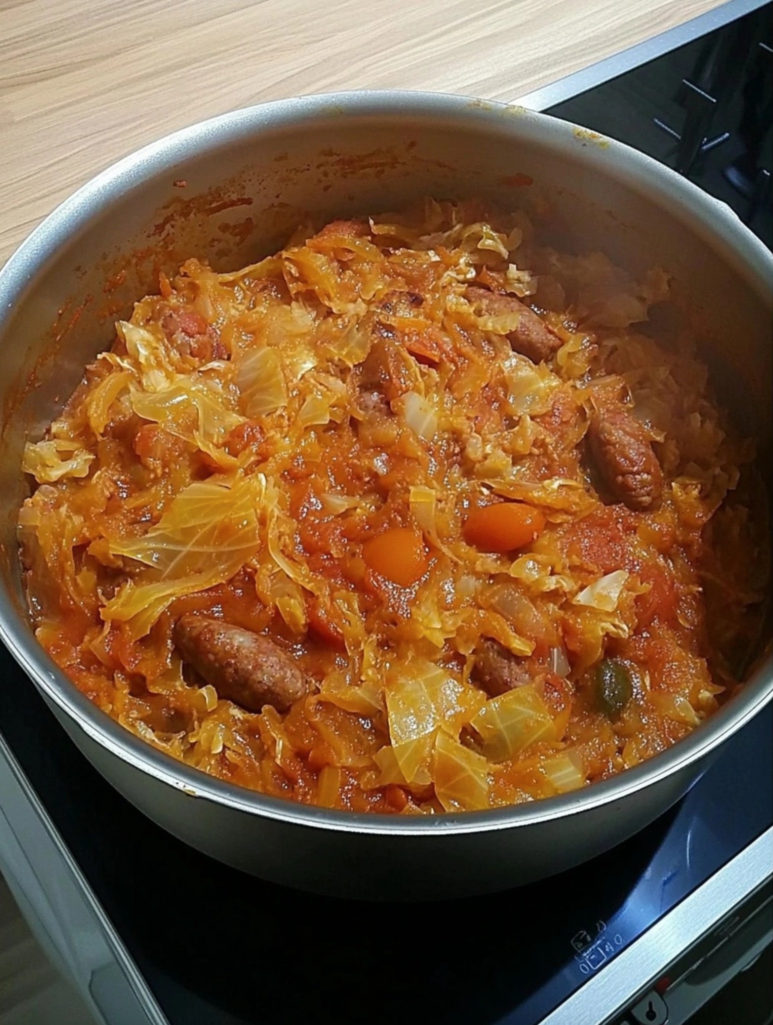Der wichtigste Schritt: Bigos braucht Zeit! Mindestens 2–3 Stunden bei niedriger Hitze köcheln lassen, besser über Nacht. Das langsame Garen intensiviert den Geschmack und macht das Fleisch zart.