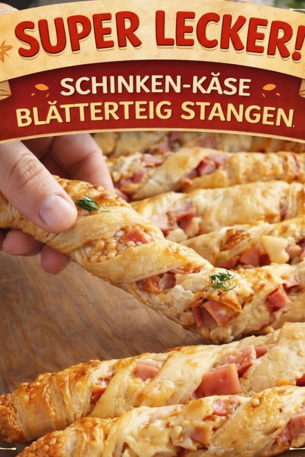 Klassisches Rezept: Blätterteig-Stangen mit Schinken und Käse