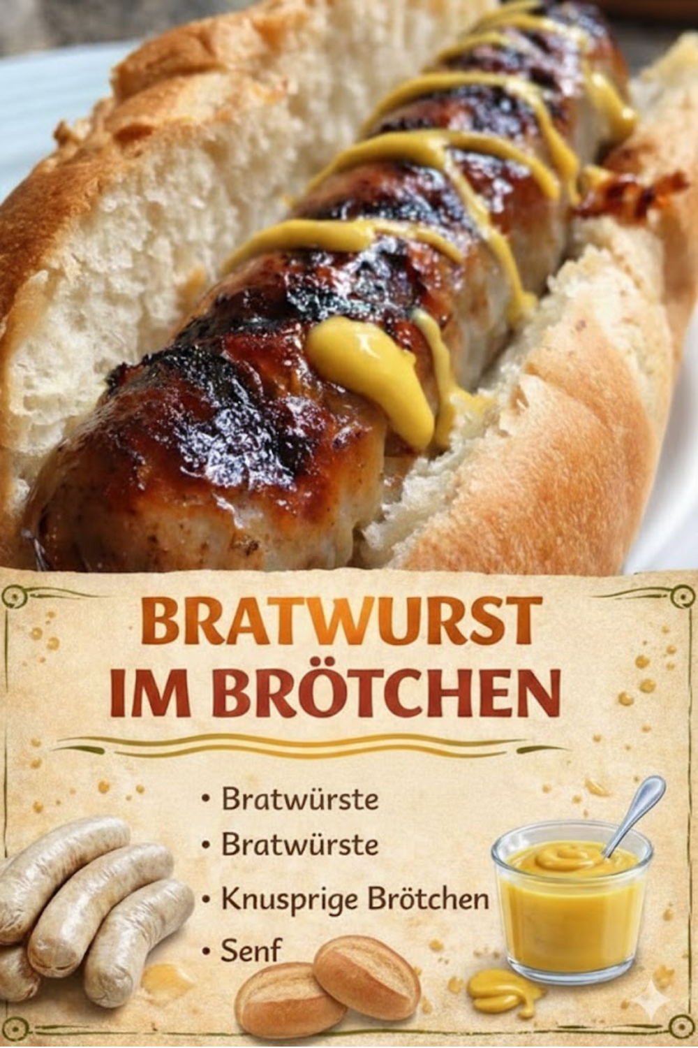 Bratwurst im Brötchen mit Senf – zeitlos und unschlagbar.