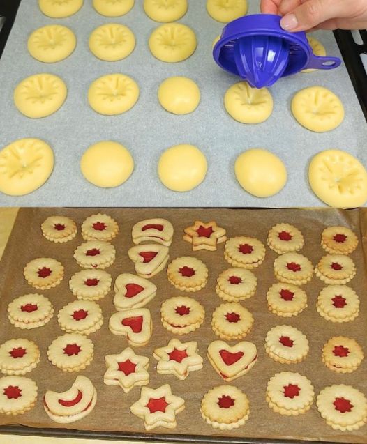 Zwei Plätzchen werden zusammengesetzt, dazwischen kommt ein Klecks Johannisbeer- oder Aprikosenmarmelade. Auch diese Variante stammt aus traditionellen Rezepten unserer Großmütter.