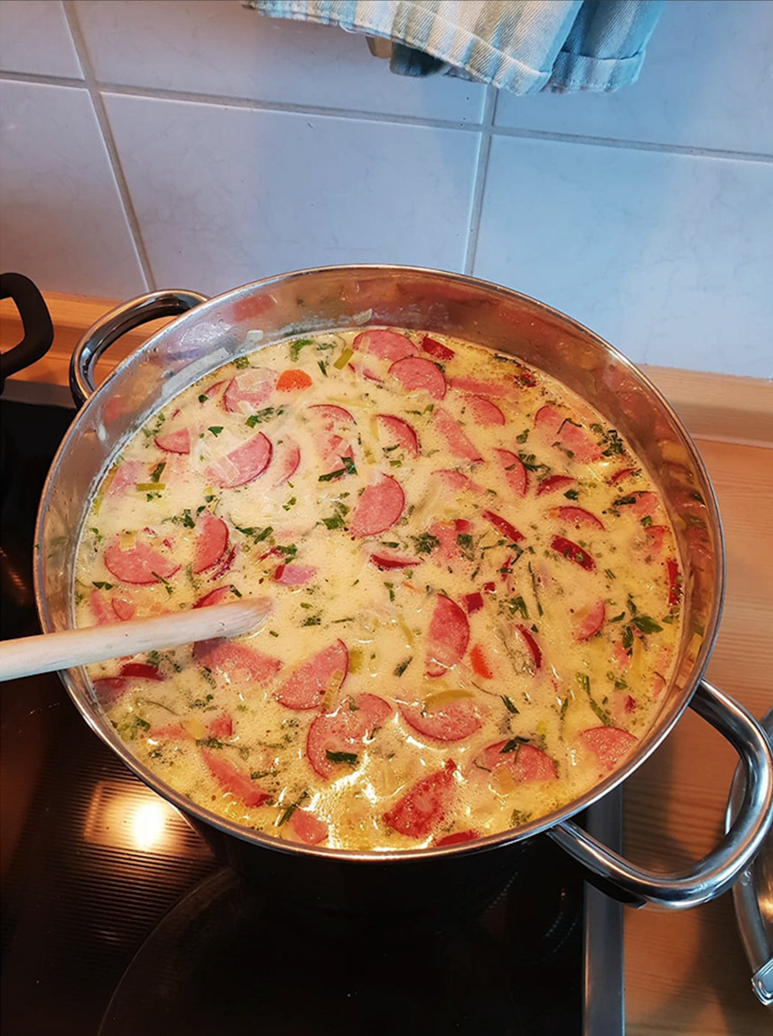 Schritt-für-Schritt-Zubereitung der Cabanossi-Käse-Suppe