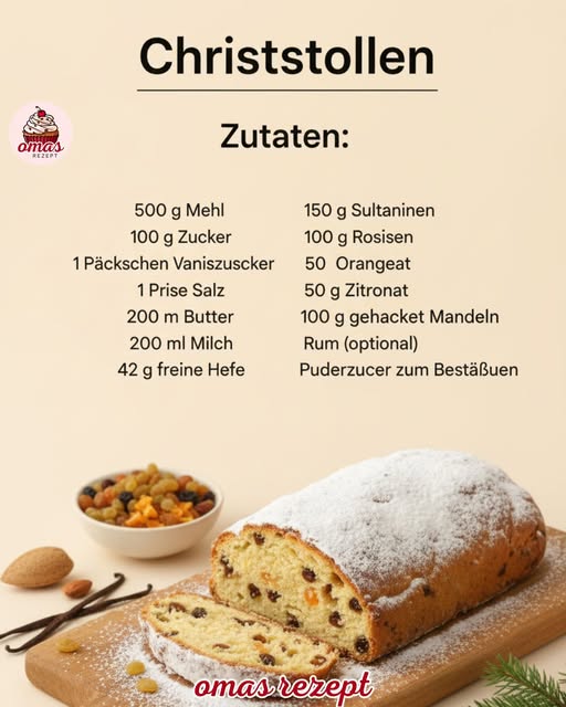 * Der Stollen schmeckt besonders gut, wenn er **ein paar Tage durchzieht** – dann entfalten sich die Aromen perfekt!