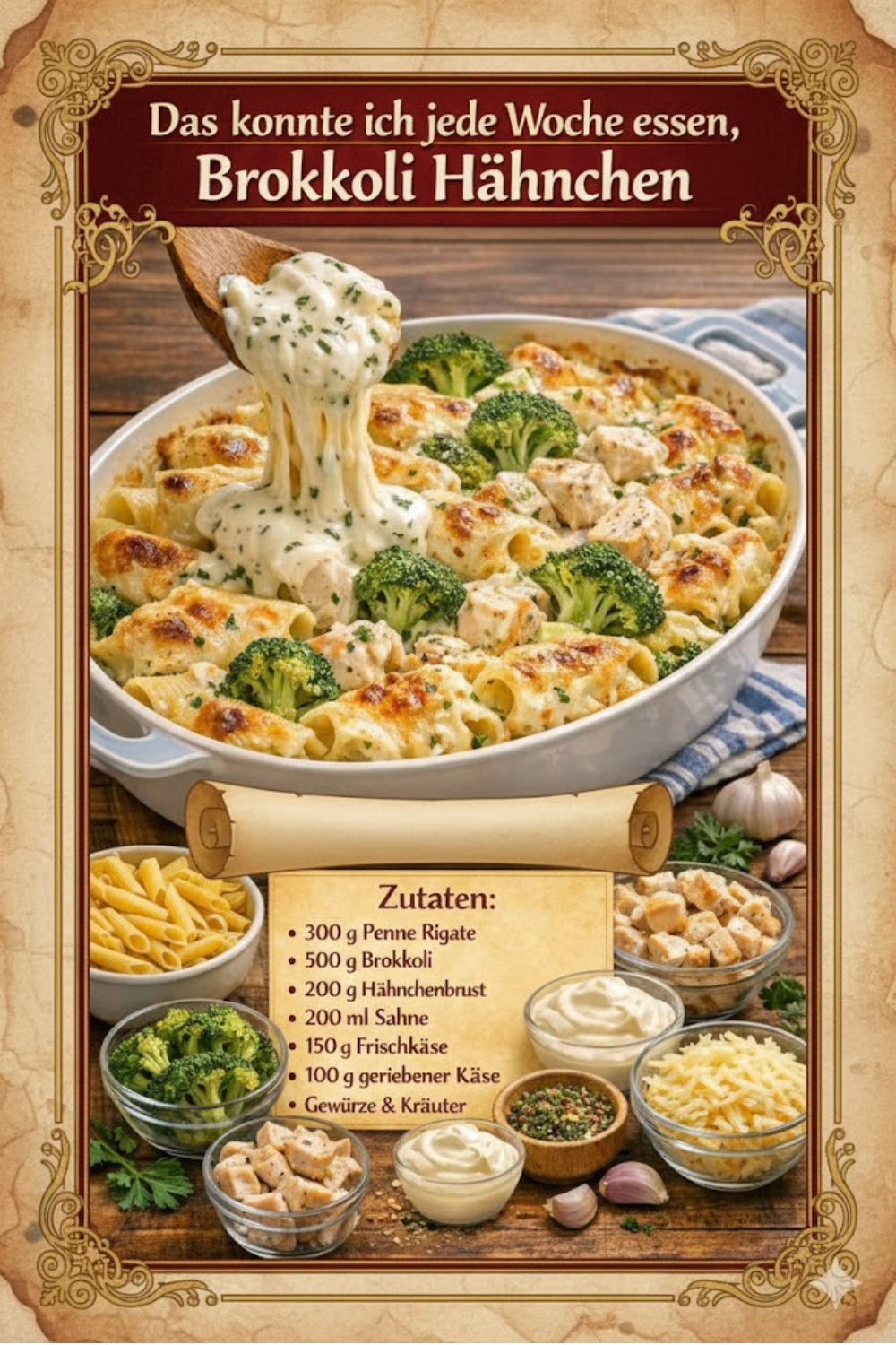 Mit nur wenigen Zutaten und einfachen Zubereitungsschritten steht ein Gericht auf dem Tisch, das sich problemlos in den Wochenplan integrieren lässt. Ob als Sonntagsessen oder für die schnelle Mahlzeit unter der Woche – <Das konnte ich jede Woche essen, Brokkoli Auflauf mit Hähnchenbrust!> wird schnell zum Lieblingsgericht.