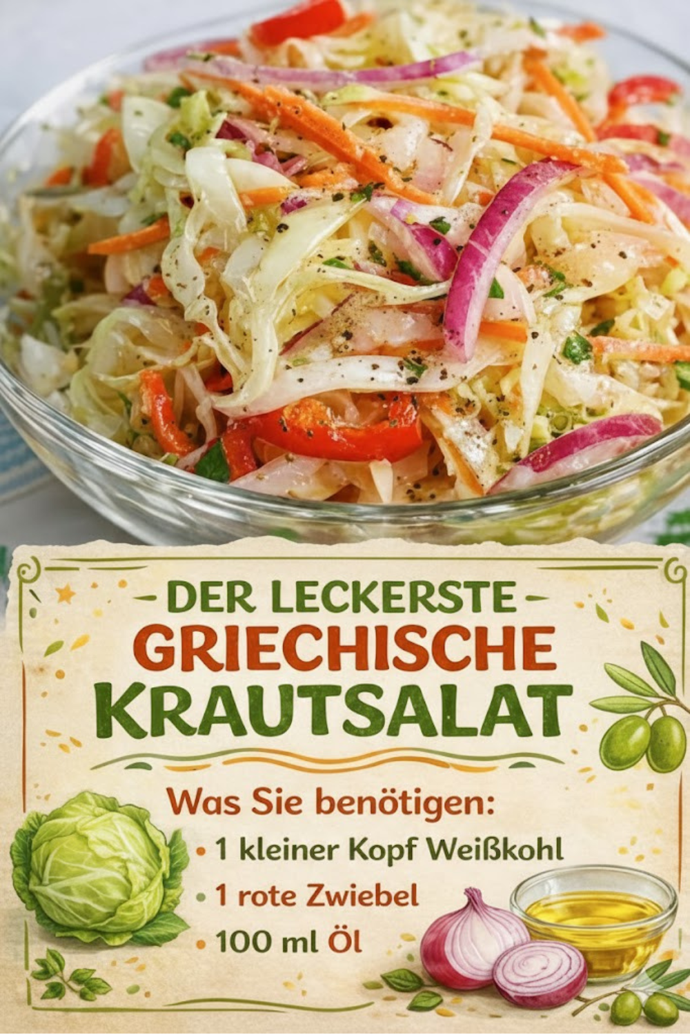 DER LECKERSTE GRIECHISCHE KRAUTSALAT… knackig, frisch und einfach Sommer pur ist weit mehr als nur eine Beilage. Er ist ein echtes Sommergericht, das Frische, Leichtigkeit und mediterranen Genuss vereint. Mit wenigen Zutaten, einfacher Zubereitung und vielen Variationsmöglichkeiten überzeugt er sowohl im Alltag als auch bei besonderen Anlässen.