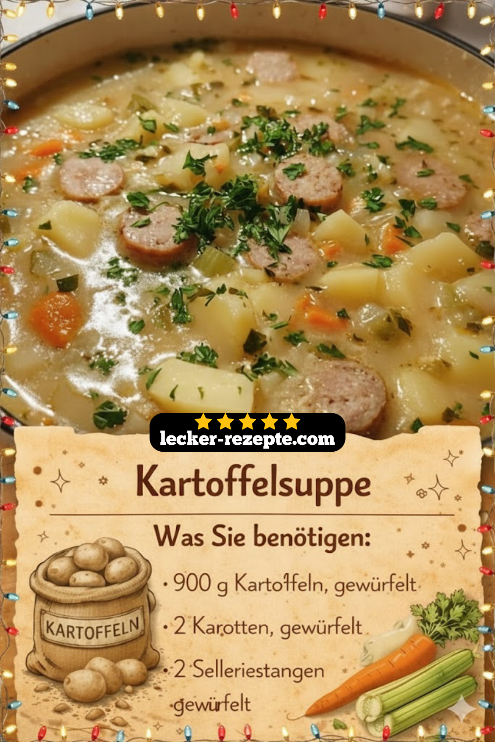 Die Kartoffelsuppe gehört zu den ältesten Suppenarten in Deutschland, Österreich und der Schweiz. Bereits im 18. Jahrhundert wurde die Kartoffel in Mitteleuropa eingeführt und entwickelte sich schnell zu einem Grundnahrungsmittel. Diese Kartoffelsuppe wärmt Herz und Seele, herzhaft und genau wie bei Oma, weil sie damals wie heute einfach, nahrhaft und sättigend ist. Viele Familien haben ihre eigene Version des Rezepts, oft über Generationen weitergegeben.