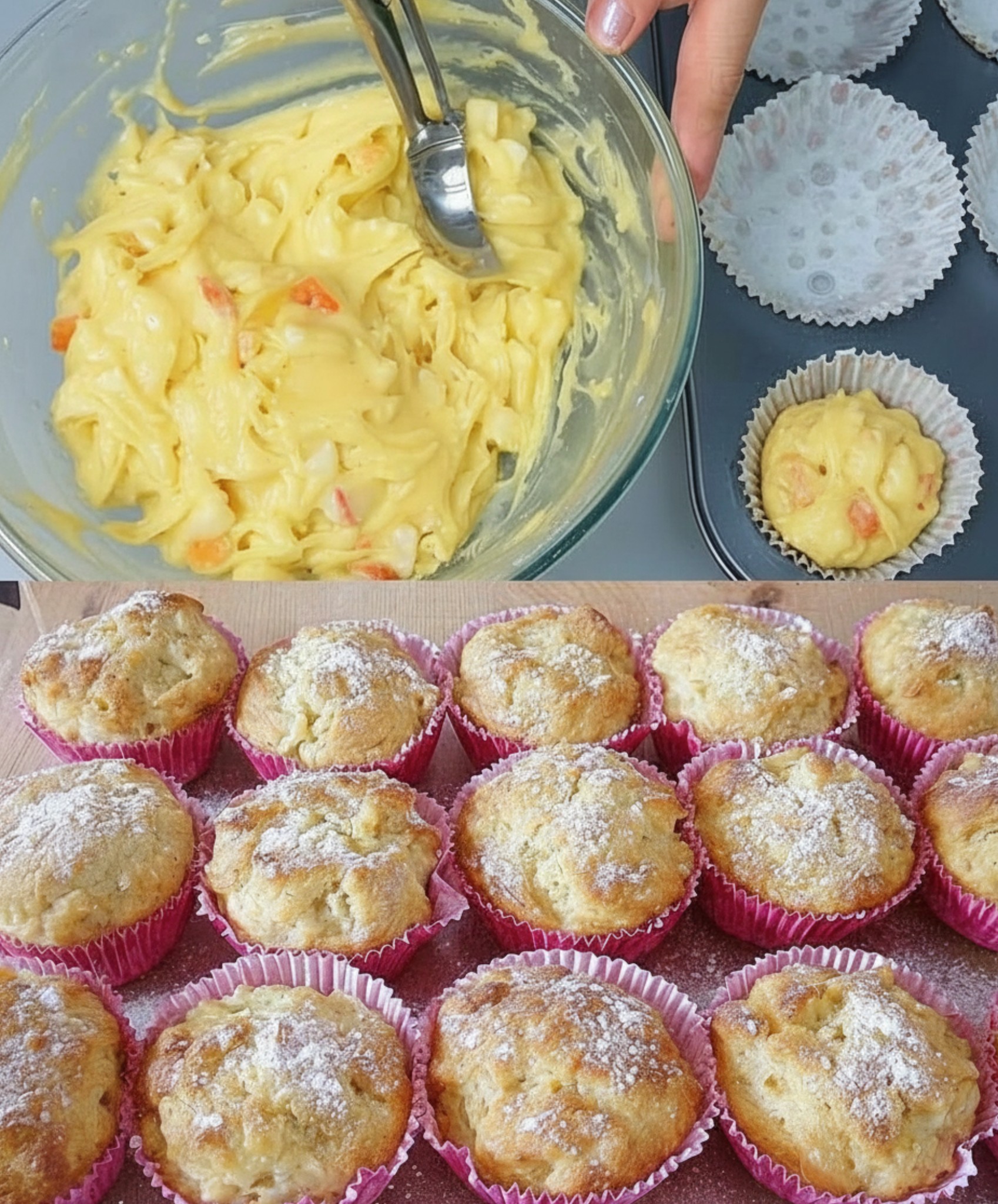 20–25 Minuten backen, bis die Muffins goldbraun sind. Mit einem Holzstäbchen prüfen – wenn kein Teig daran kleben bleibt, sind sie fertig.