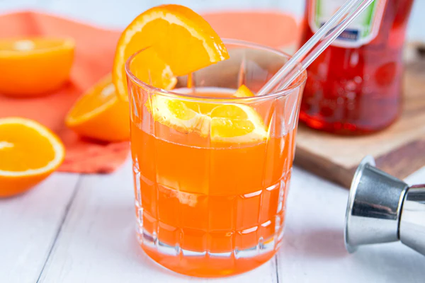 Ja, mittlerweile gibt es alkoholfreie Aperol-Alternativen, die du genauso verwenden kannst. In Kombination mit Zitronensaft und Sirup entsteht ein erfrischender Mocktail.