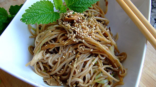 Kombiniere Soba Nudeln mit mediterranem Gemüse wie Zucchini, Paprika und Olivenöl – ein spannendes Zusammenspiel aus Ost und West.