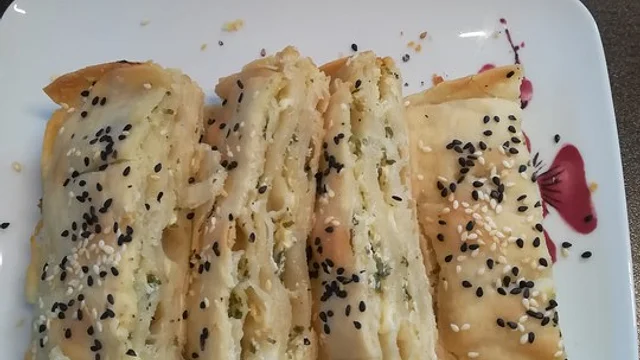 Ein echter Klassiker! Der dünne Yufka Teig wird mit einer würzigen Mischung aus Spinat, Zwiebeln und Feta gefüllt, dann goldbraun gebacken.
