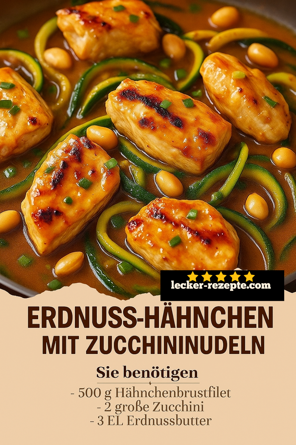 Erdnuss-Hähnchen mit Zucchininudeln ist ein Paradebeispiel dafür, dass gesunde Küche nicht langweilig sein muss. Es vereint exotische Aromen, frische Zutaten und ausgewogene Nährstoffe zu einem Gericht, das sowohl Fitnessfans als auch Genießer begeistert.