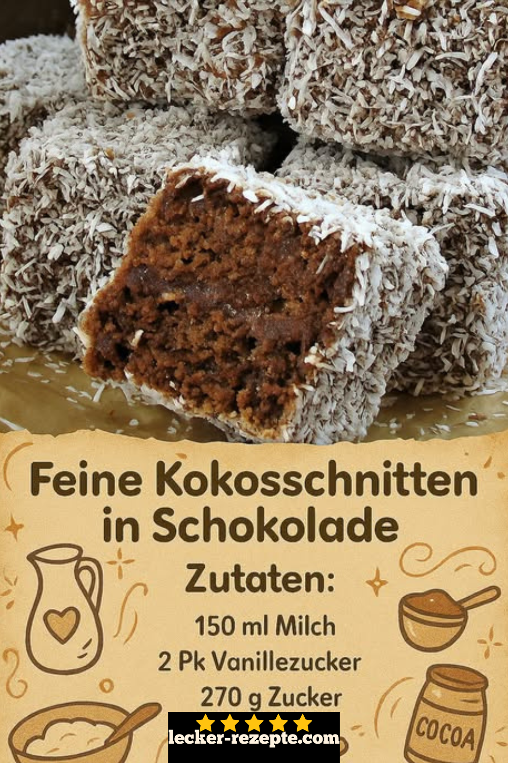 Feine Kokosschnitten in Schokolade sind zart, einfach himmlisch tropisch-lecker – und genau diese Mischung aus einfachen Zutaten und großer Wirkung macht sie so beliebt in der DACH-Region. Zudem benötigen sie keine ausgefallene Technik und sind auch für Backanfänger gut machbar.