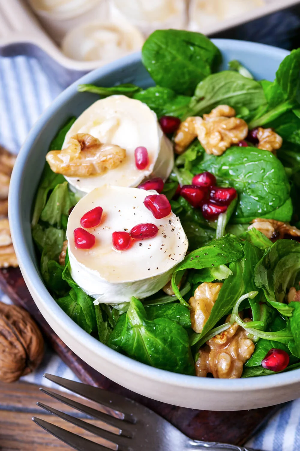 Nur frische Zutaten verwenden – Die Qualität von Salat, Nüssen und Dressing ist entscheidend.
