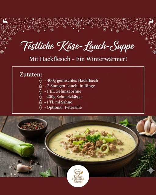 Die Käse-Lauch-Suppe heiß servieren. Optional mit frischer Petersilie bestreuen.
