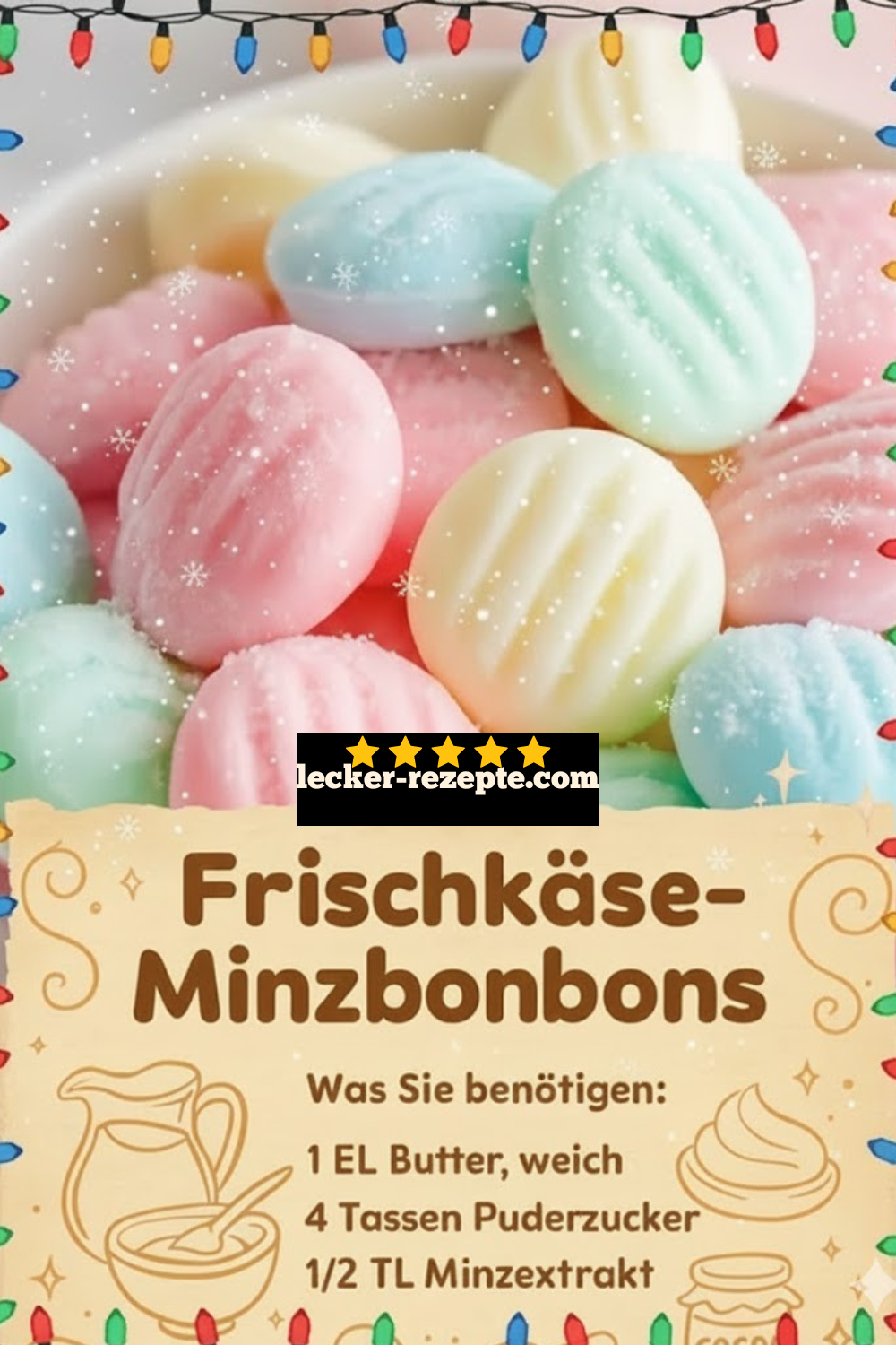 Frischkäse-Minzbonbons sind cremig kleine Kühlkuss-Leckereien zum Wegnaschen, weil sie ein außergewöhnliches Geschmackserlebnis bieten. Die Kombination aus Cremigkeit und Frische ist einzigartig und spricht unterschiedliche Altersgruppen an.