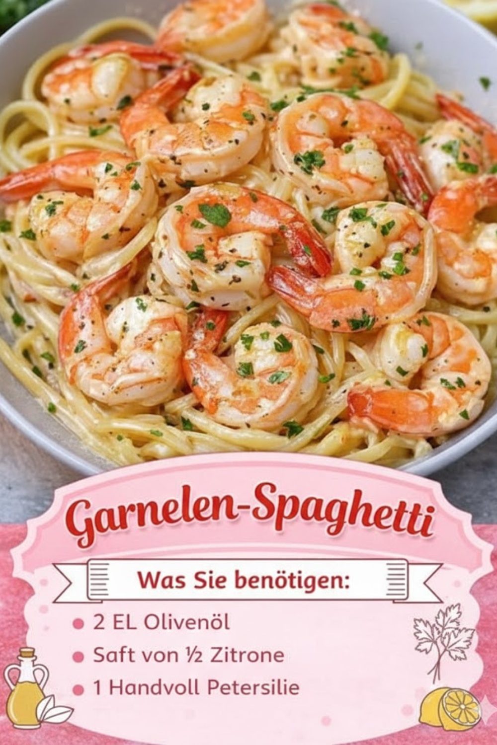 Diese Zutaten machen Garnelen-Spaghetti, aromatisch und Urlaubsfeeling auf dem Teller zu einem echten Highlight.