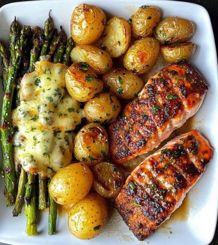 Probiere es gleich aus, genieße den Duft aus dem Ofen – und entdecke, warum gebackener Lachs mit Kartoffeln und Spargel zu den beliebtesten Gerichten in deutschen Küchen gehört.