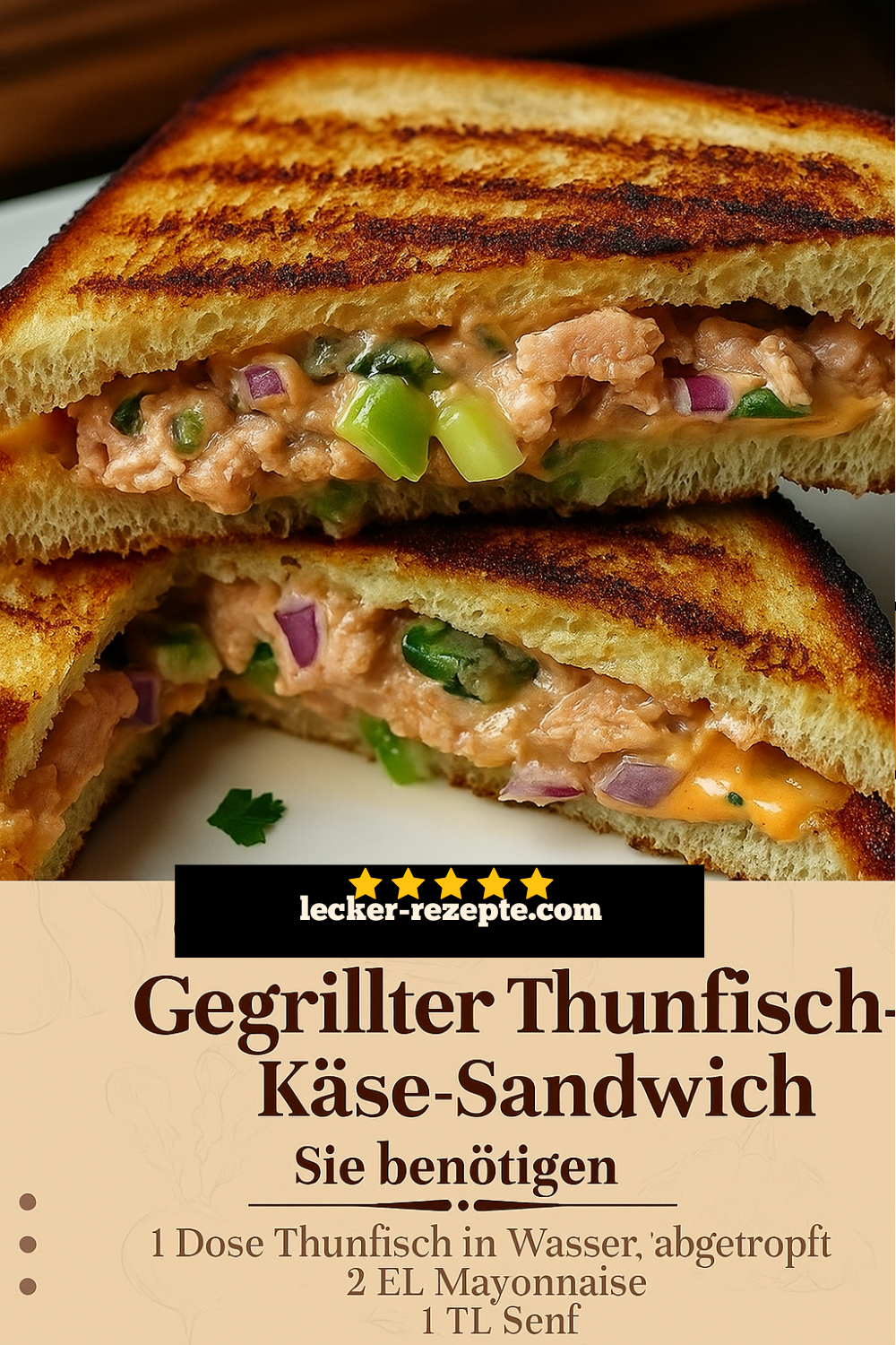 Der Thunfisch liefert wertvolle Proteine und Omega-3-Fettsäuren, während der Käse für reichlich Geschmack und Sättigung sorgt. Damit ist dieses Sandwich nicht nur lecker, sondern auch nahrhaft und schnell zubereitet.