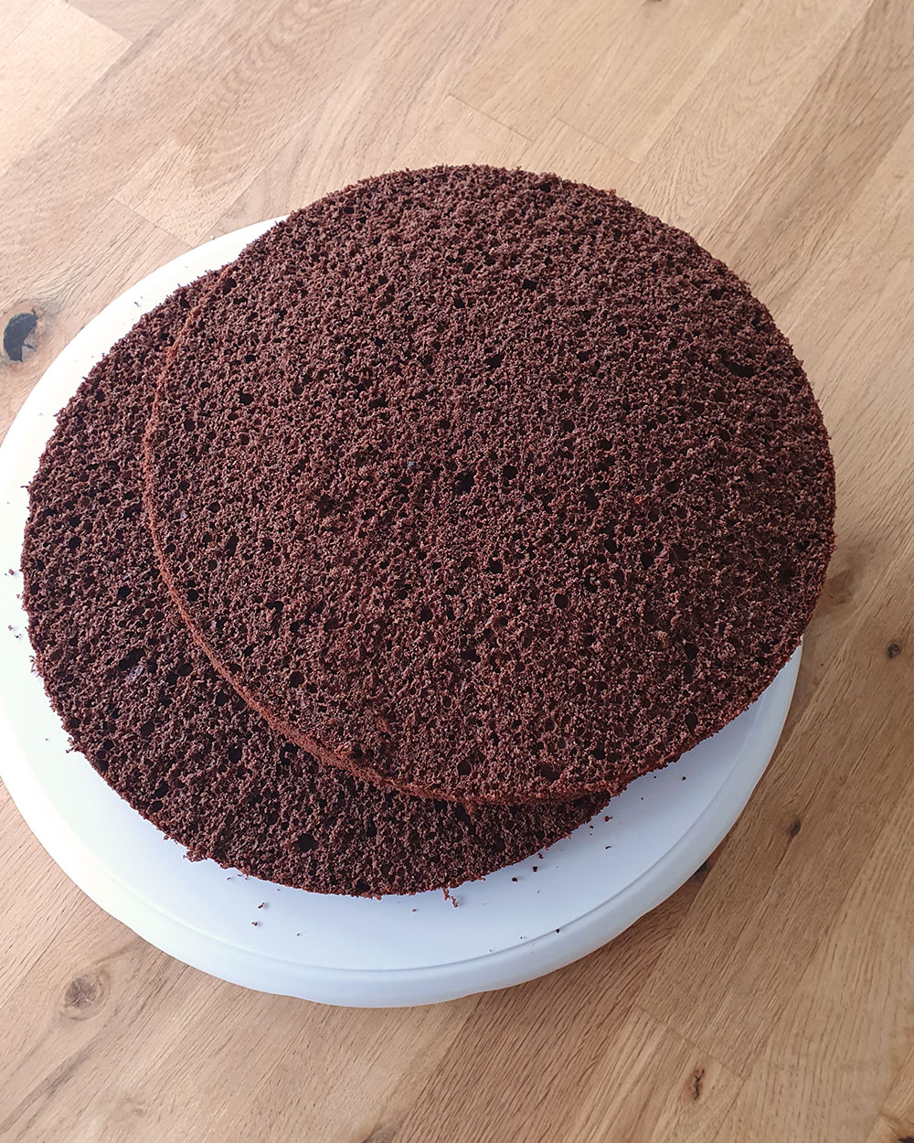 Schokobiskuit lässt sich hervorragend einfrieren und später verwenden. Einfach komplett auskühlen lassen, luftdicht verpacken und bei Bedarf auftauen – ideal, wenn du Tortenböden vorbereiten möchtest.