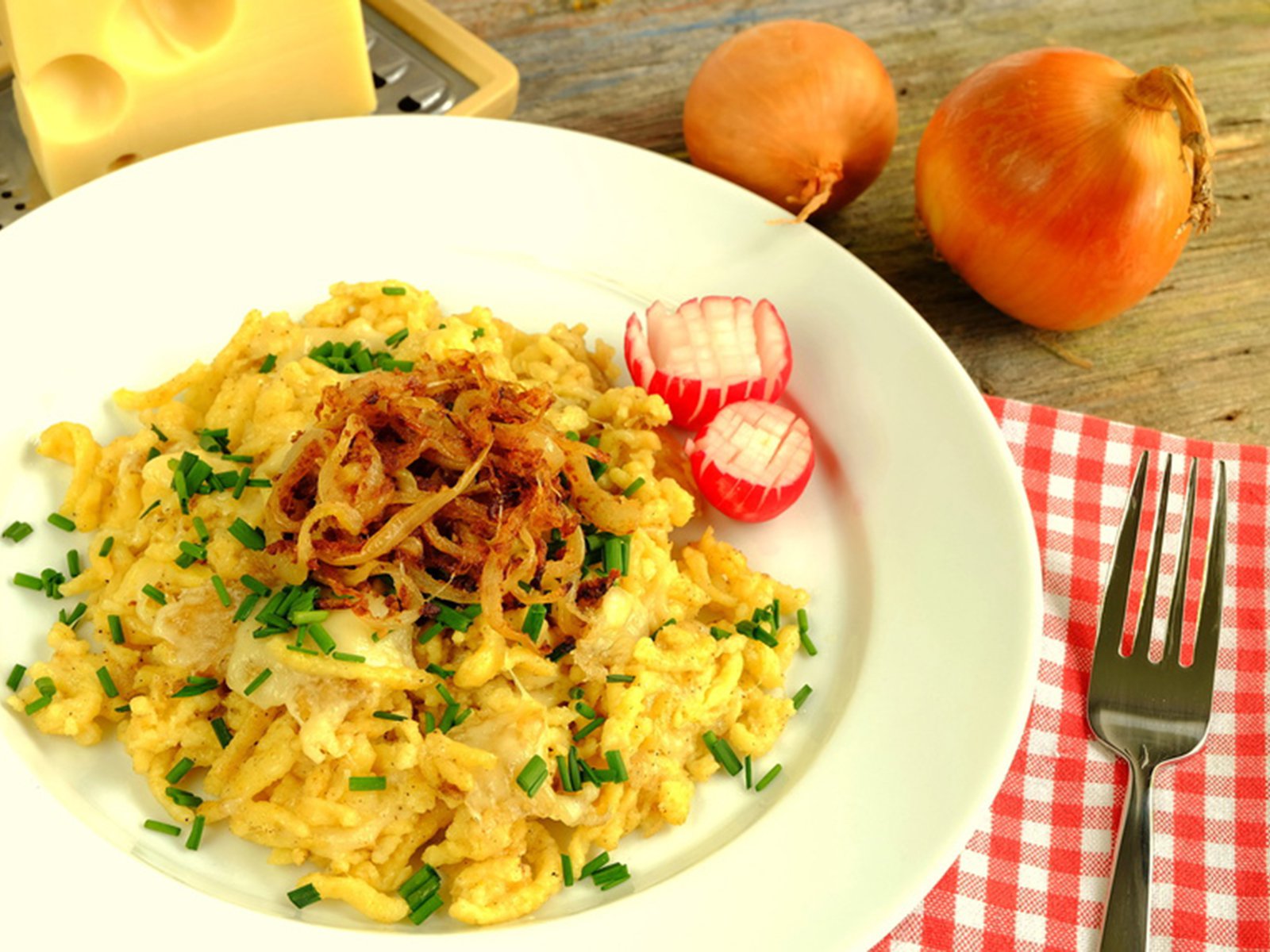 Käsespätzle sind ein Hauptgericht für sich, können aber auch wunderbar mit Beilagen kombiniert werden. Typische Begleiter sind: