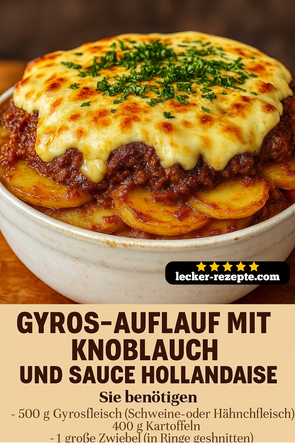 Der Gyros-Auflauf mit Knoblauch und Sauce Hollandaise – Ein mediterraner Genuss vereint mediterrane Aromen, cremige Texturen und würziges Fleisch zu einem Gericht, das sowohl im Alltag als auch zu besonderen Anlässen begeistert. Die Kombination aus würzigem Gyros, aromatischem Knoblauch und cremiger Hollandaise macht diesen Auflauf zu einem echten Highlight in der Küche Deutschlands, Österreichs und der Schweiz.