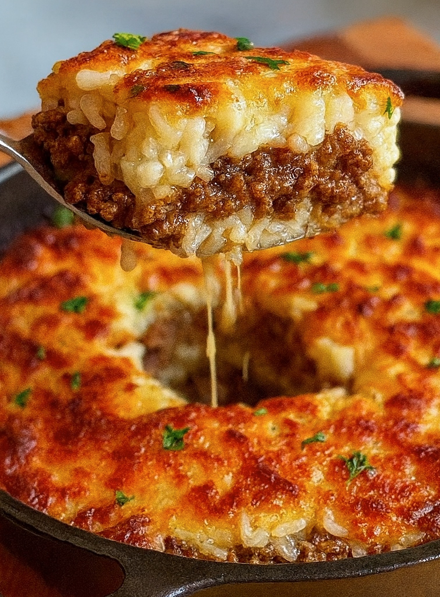 Herzhaftigkeit: Die Kombination aus würzigem Hackfleisch, aromatischem Käse und lockerem Reis sorgt für ein intensives Geschmackserlebnis.