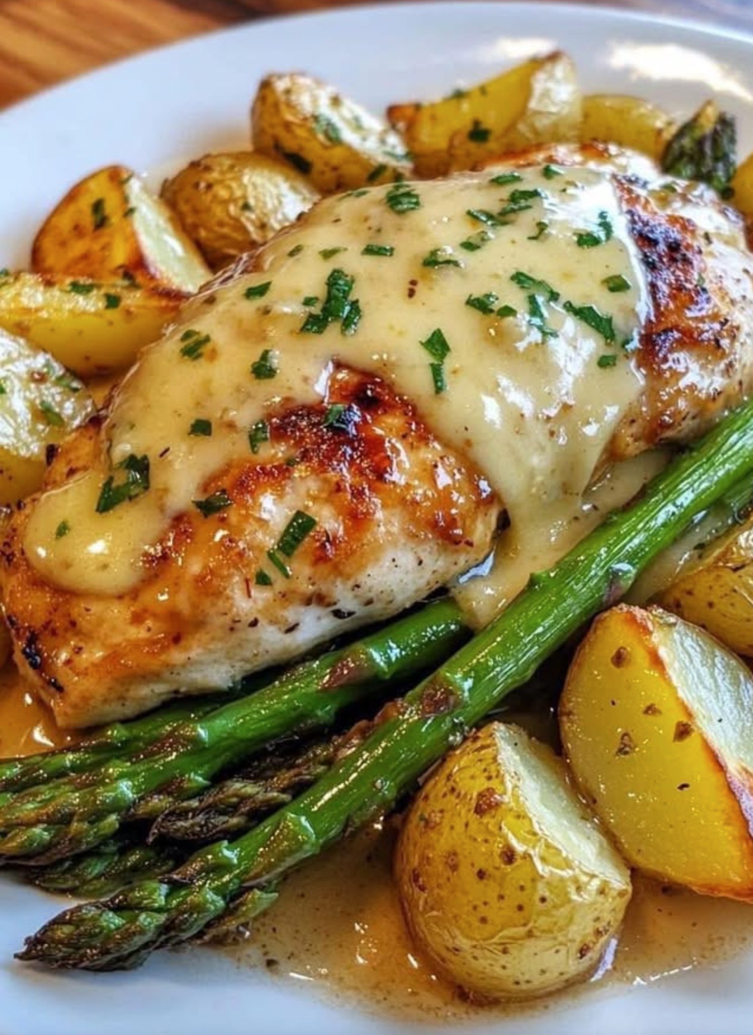 Honig-Senf-Hähnchen mit Spargel & Käse, süß, würzig, einfach zum Verlieben lässt sich wunderbar vorbereiten. Marinieren am Vorabend spart Zeit und intensiviert den Geschmack.