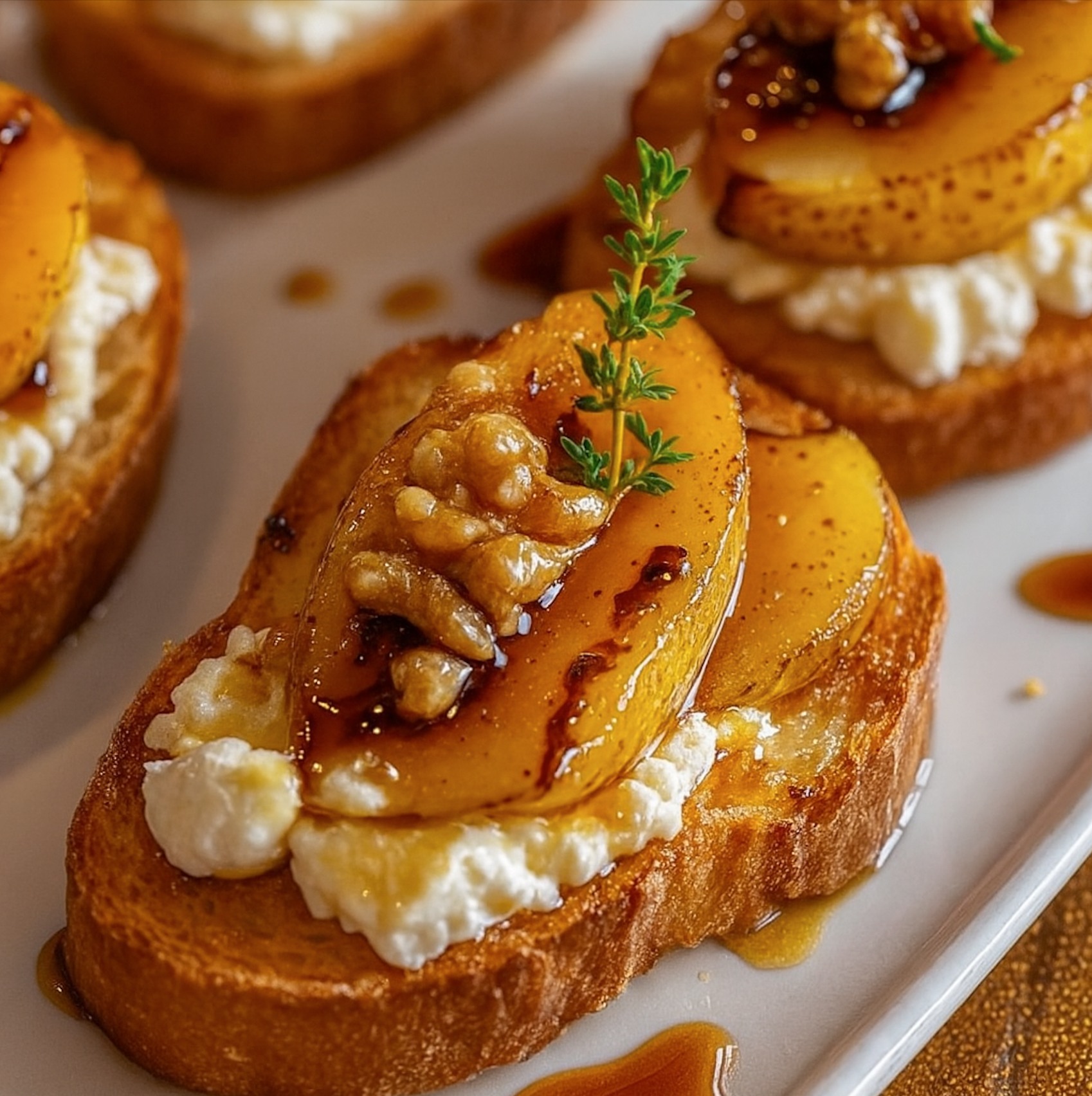 Karamellisierte Birnen & Ziegenkäse-Crostini süß trifft herzhaft auf knusprigem Brot