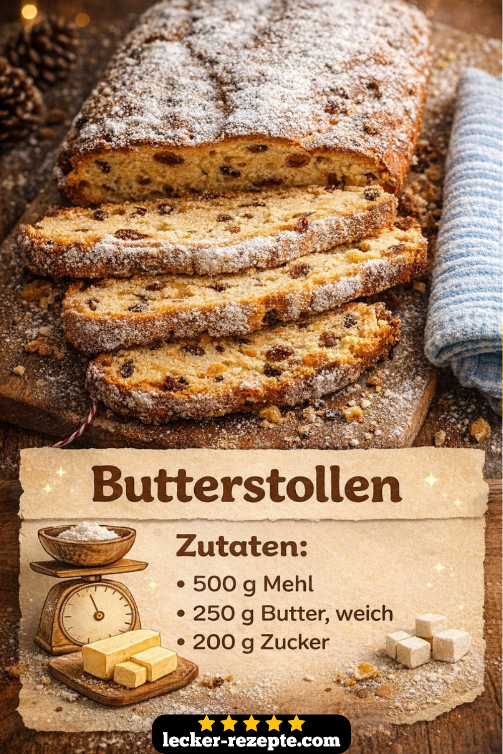 Diese Kombination sorgt für den typischen Geschmack, der den klassischen Butterstollen so unverwechselbar macht.