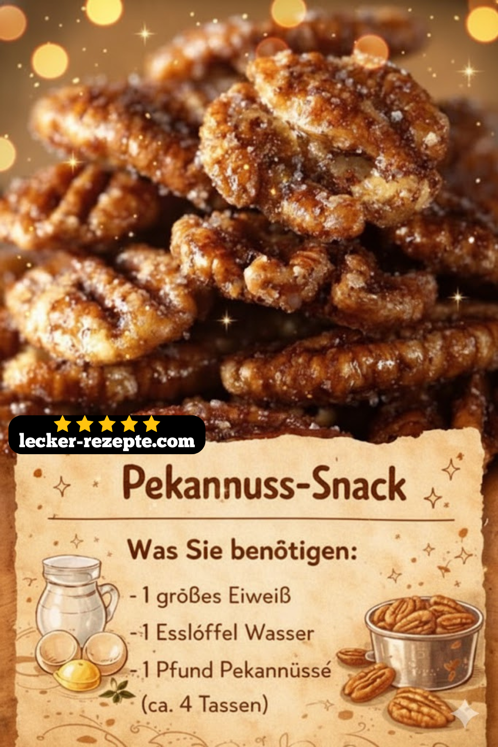 Pekannüsse sind eng mit Genussmomenten verbunden. Sie schmecken milder als Walnüsse, sind buttrig-zart und lassen sich hervorragend karamellisieren. Genau hier entfaltet sich Knackig, karamellig, perfekt.. Pekannussglück pur! in seiner schönsten Form. Der süß-nussige Duft, das leise Knistern in der Pfanne und das glänzende Finish machen sie zu einem echten Lieblingsrezept – egal ob für Weihnachten, Herbstabende oder einfach zwischendurch.
