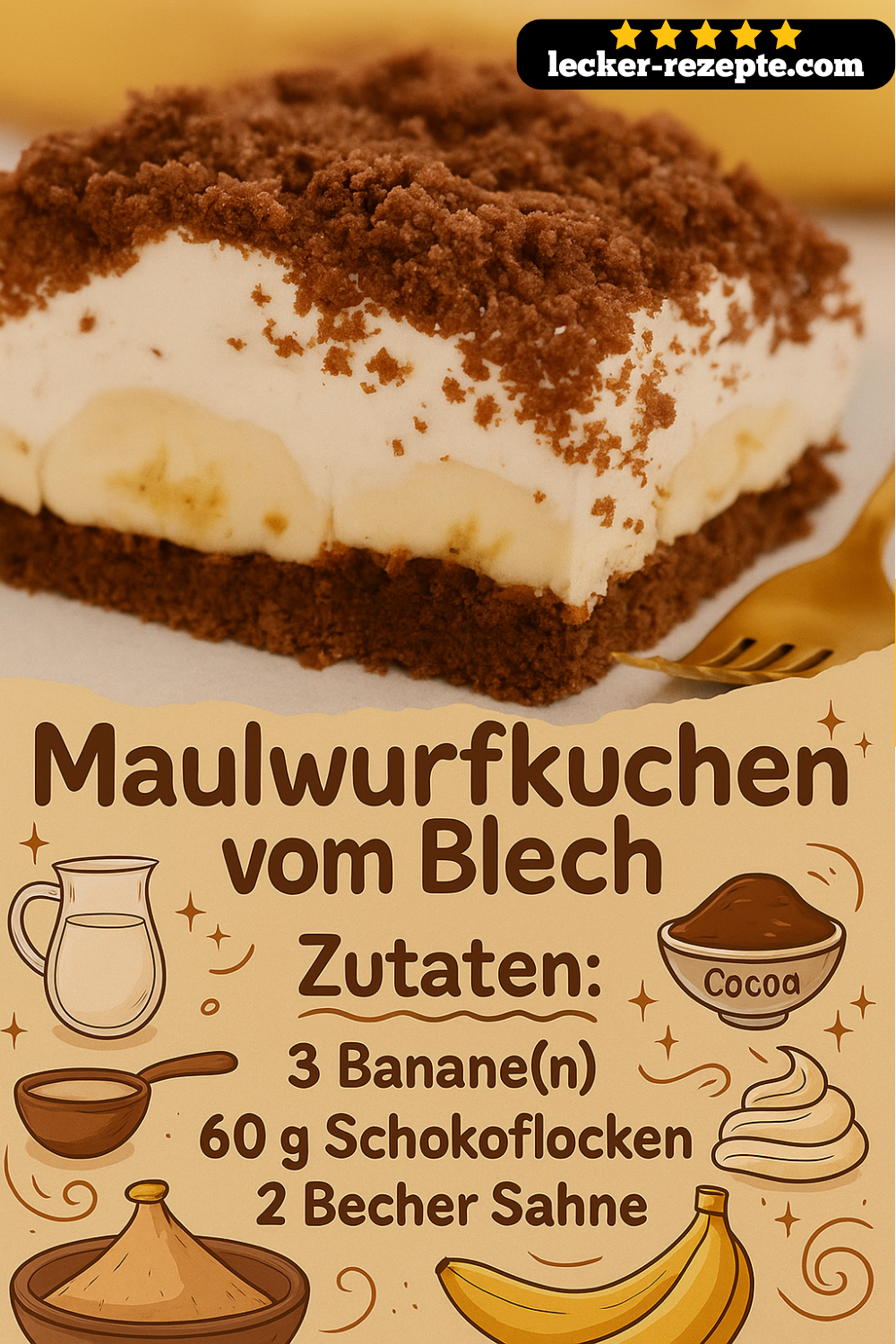 Ob für Kindergeburtstage, Sommerpartys oder den gemütlichen Sonntagskaffee – dieser Kuchen sorgt garantiert für Begeisterung. Maulwurfkuchen vom Blech einfach himmlisch lecker – das ist keine Übertreibung, sondern ein Versprechen an alle Schokoladen- und Bananenliebhaber!
