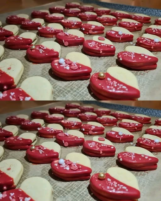 3. Backen: Den Backofen auf 180 °C vorheizen und die Herzen für 8-10 Minuten backen, bis sie leicht golden sind. Abkühlen lassen.