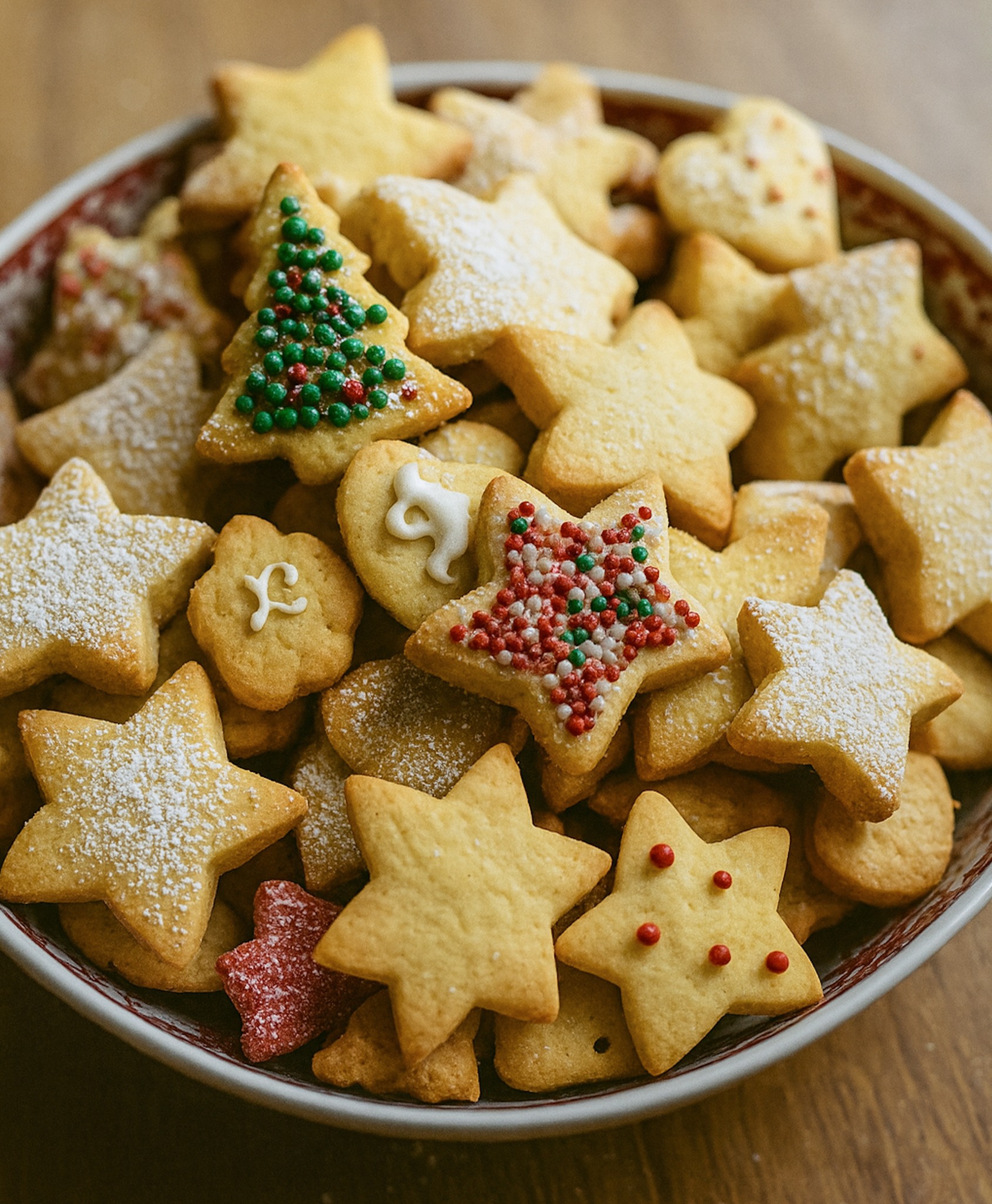 Buttergebäck in verschiedenen Formen: Mit Ausstechformen können Sie Ihre Butterplätzchen in den unterschiedlichsten Formen gestalten. Vom klassischen Stern bis hin zu weihnachtlichen Motiven sind der Kreativität keine Grenzen gesetzt.