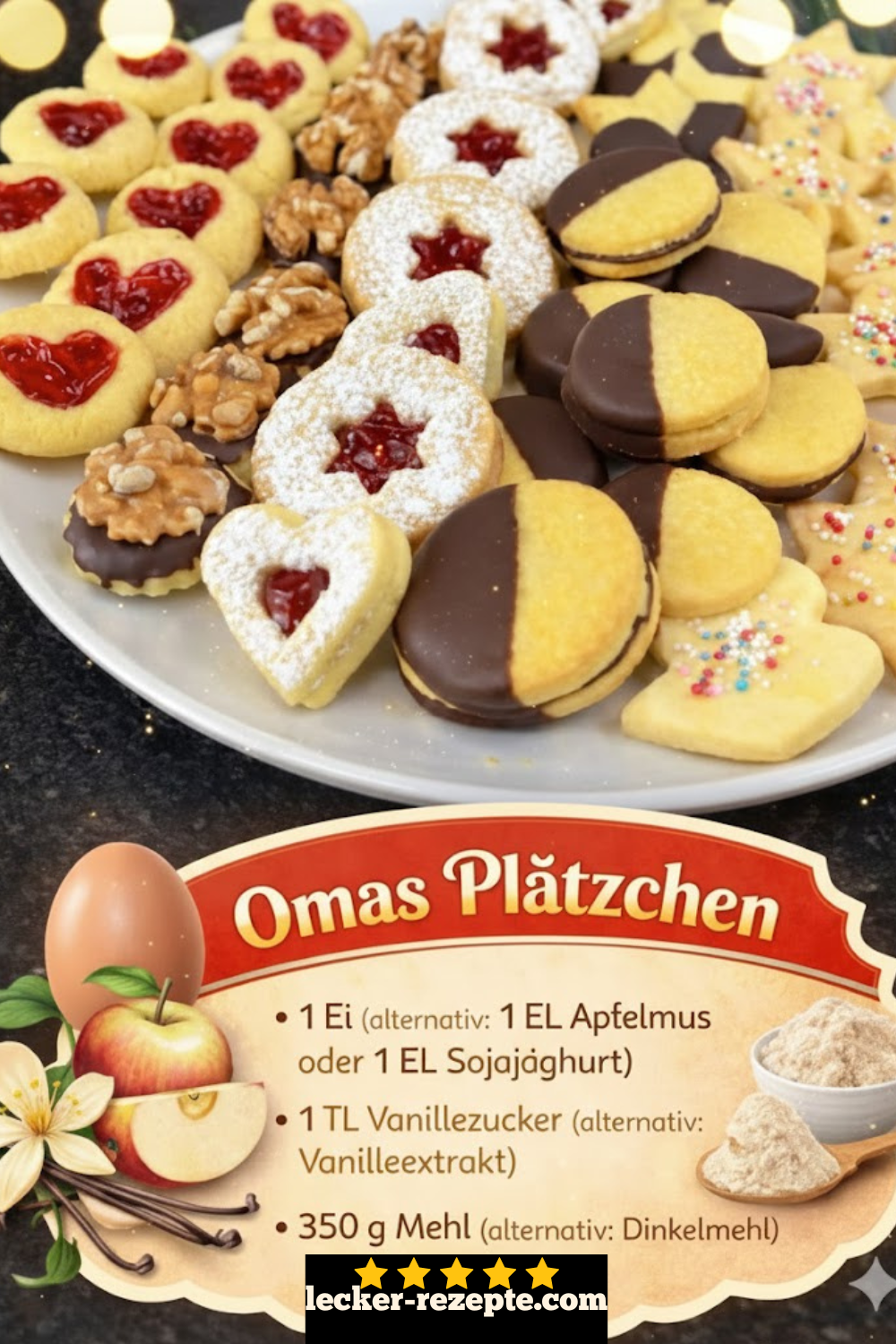 Omas Plätzchen schmecken wie pure Kindheit, weil sie Erinnerungen an eine Zeit wecken, in der das Leben einfacher war. Die Rezepte wurden oft von Generation zu Generation weitergegeben und enthalten oft heimische Zutaten wie Butter, Zucker, Eier, Vanille und Nüsse. Genau diese Zutaten verleihen den Plätzchen ihr unverwechselbares Aroma.