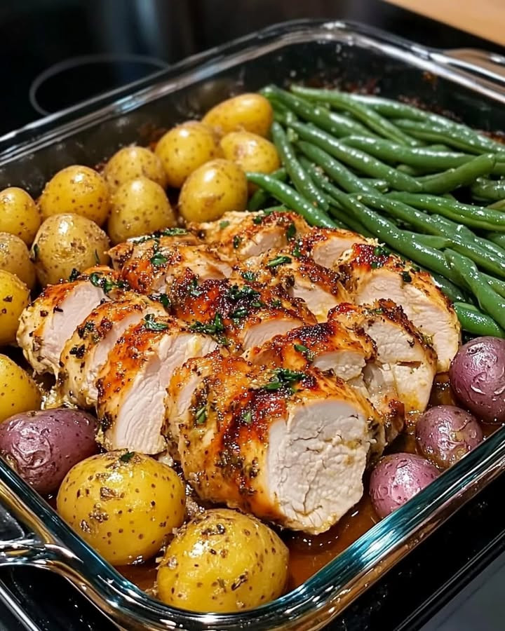 Das One-Pan Knoblauch Kräuterhühnchen mit Kartoffeln und grünen Bohnen ist die ideale Lösung für alle, die gesund, frisch und unkompliziert kochen möchten. In nur einer Pfanne entsteht ein vollwertiges, aromatisches Essen, das alle Sinne anspricht – würzig durch den Knoblauch, frisch durch die Kräuter und sättigend durch Kartoffeln und Bohnen.